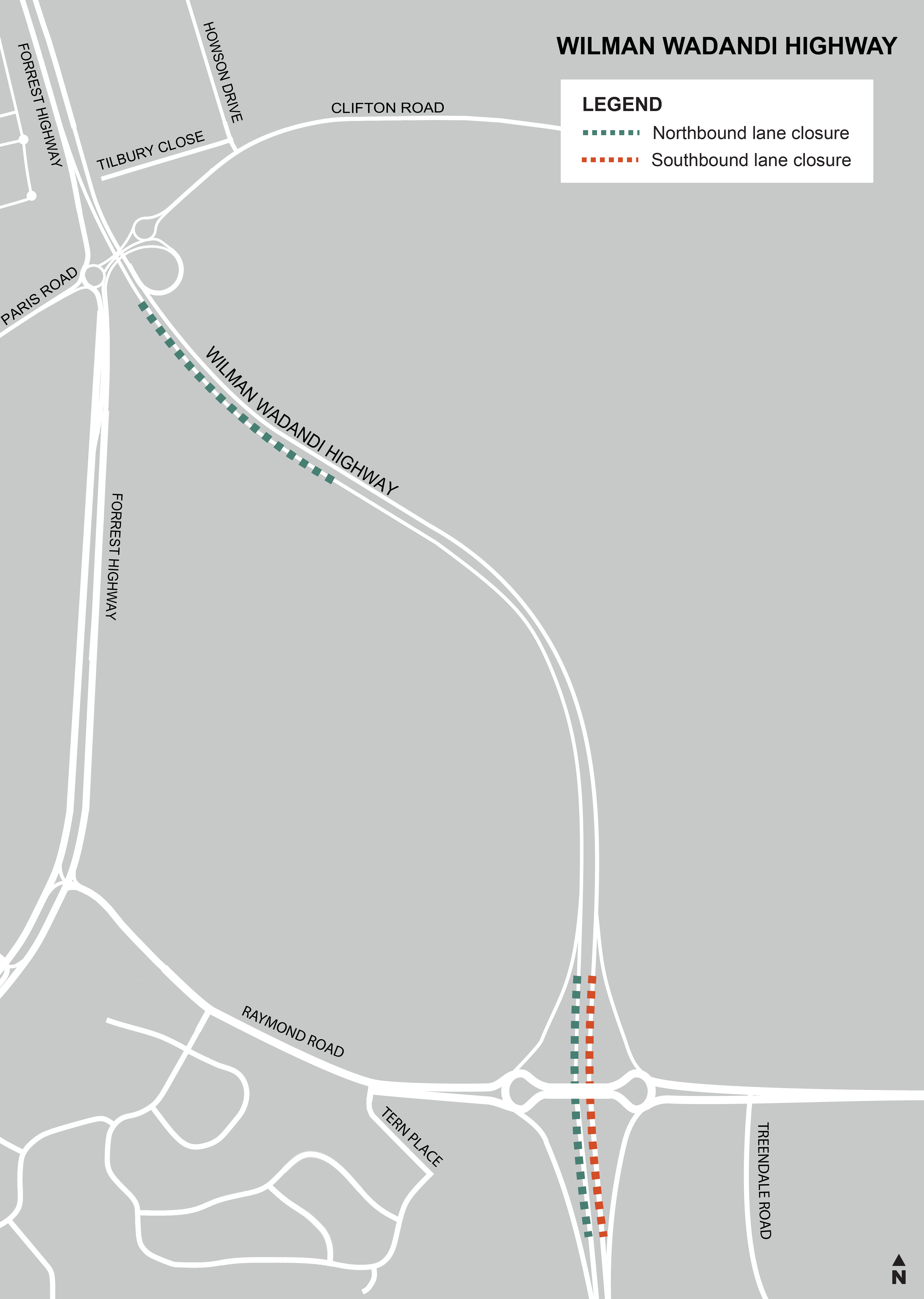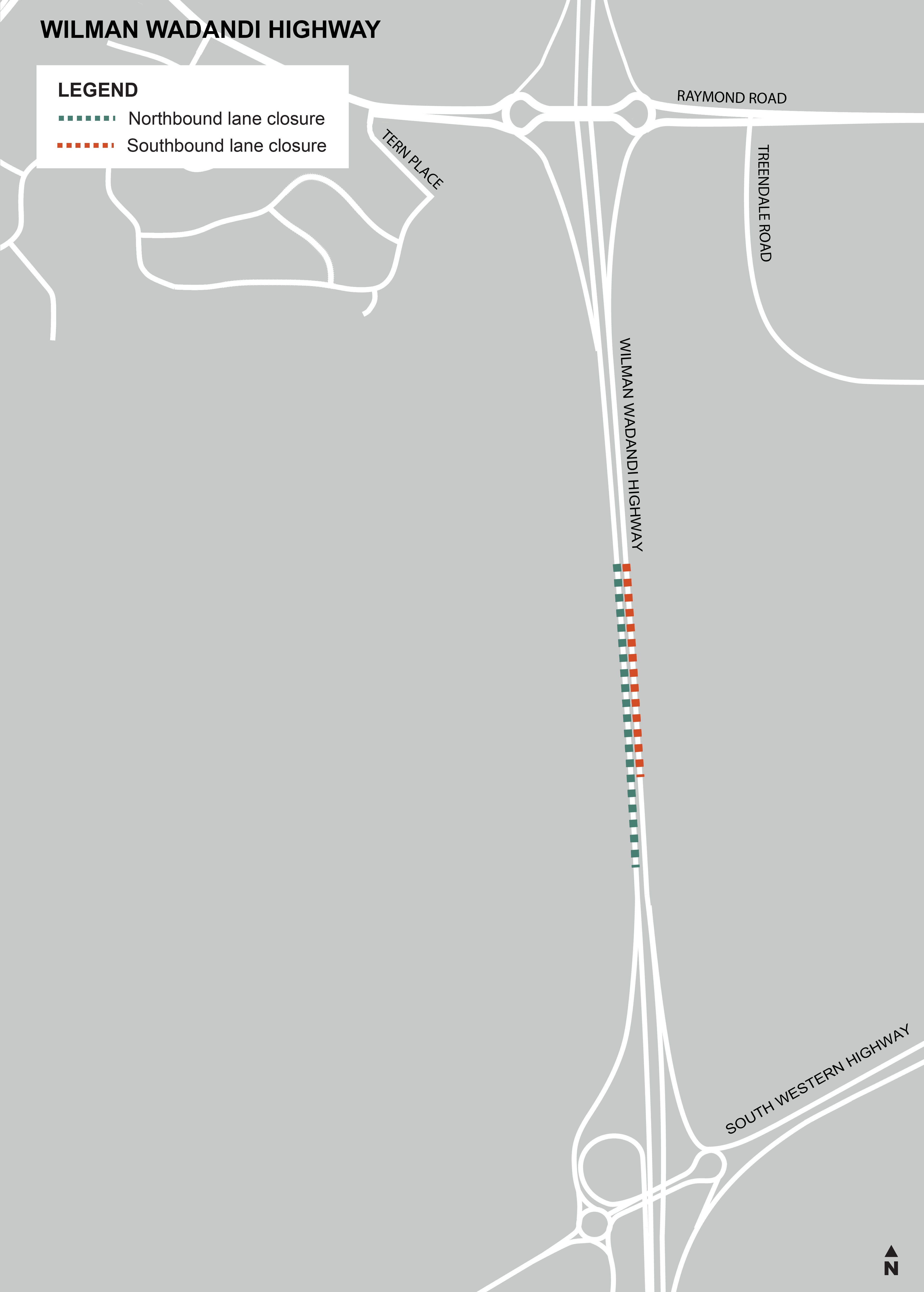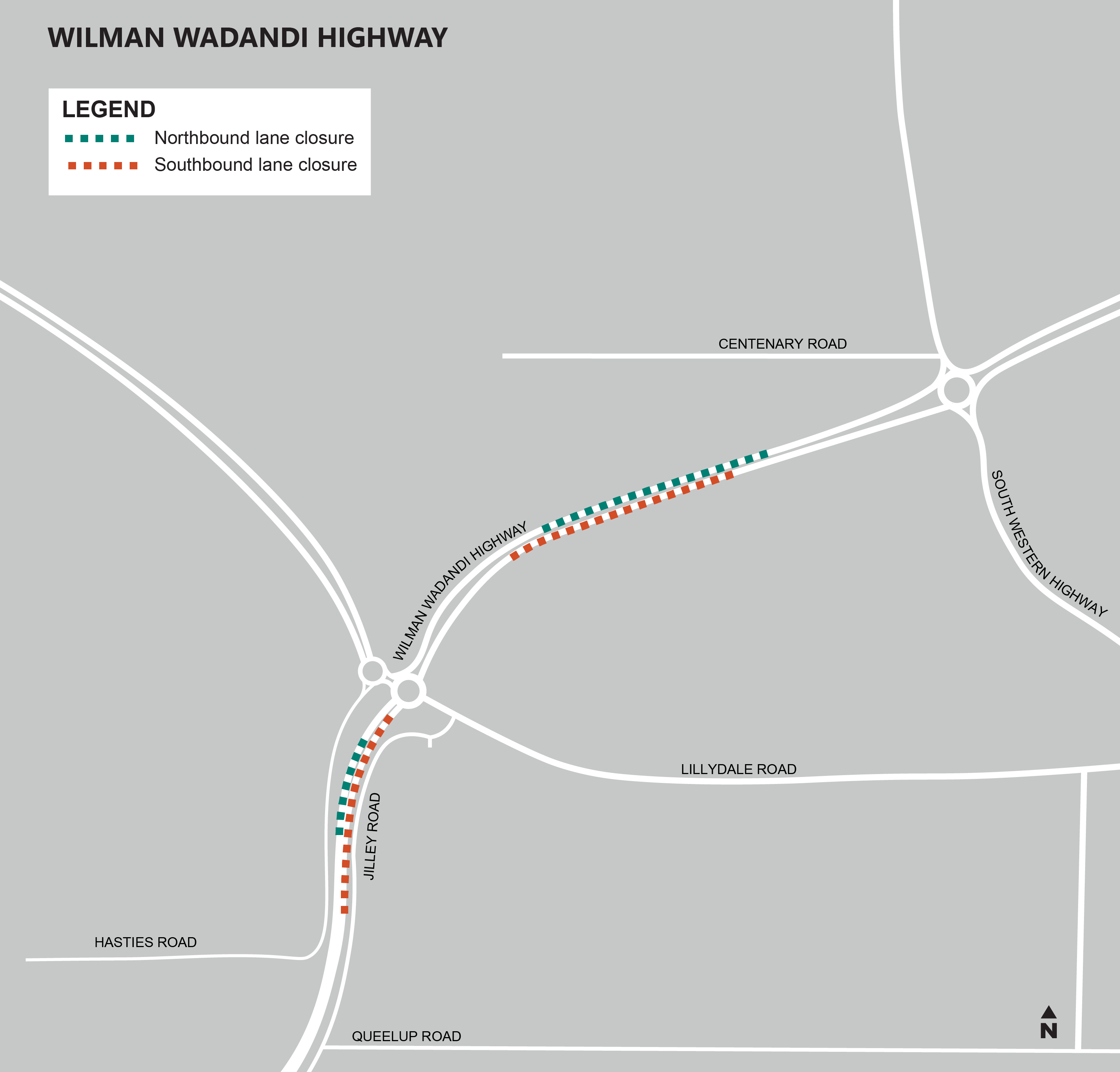 Wilman Wadandi Highway, north and south of Lillydale Road intersection