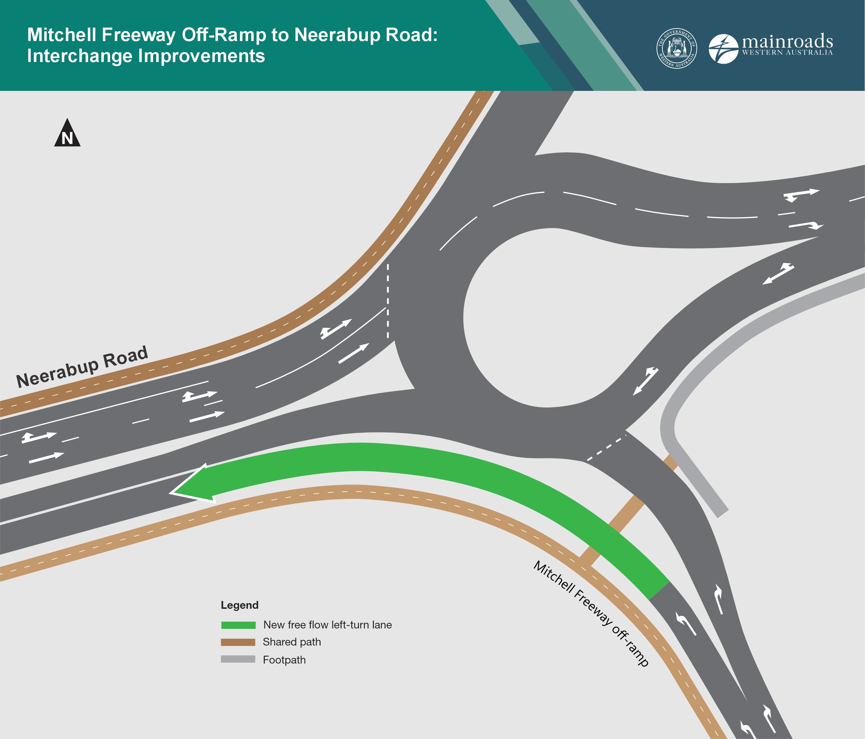 Motorists using the existing off-ramp from Mitchell Freeway currently experience lengthy delays in the afternoon peak period, due to the requirement to give-way to Neerabup Road traffic.