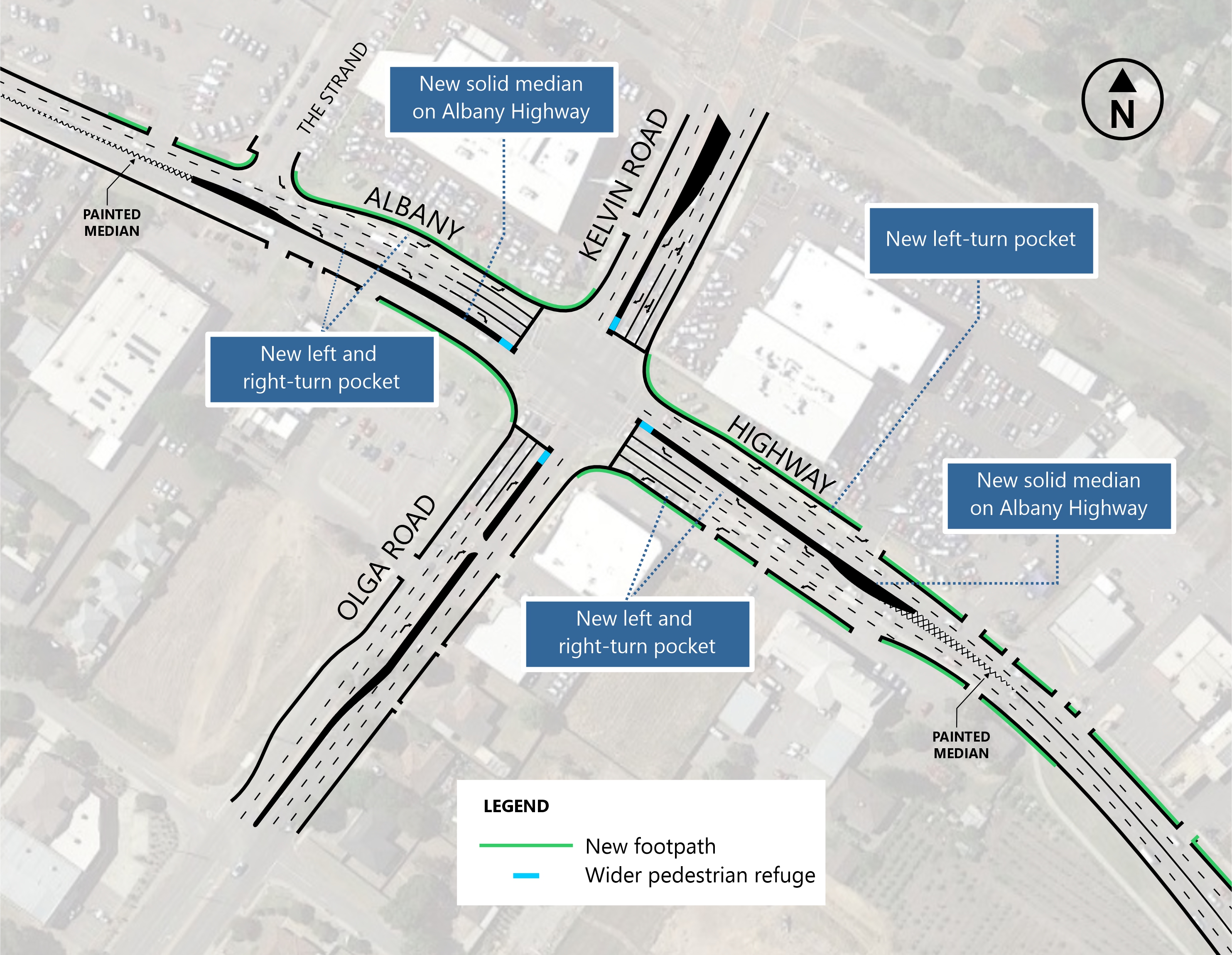 We are planning to upgrade the busy intersection of Albany Highway, Olga Road and Kelvin Road in Maddington, to improve traffic flow and enhance safety for road users and pedestrians.