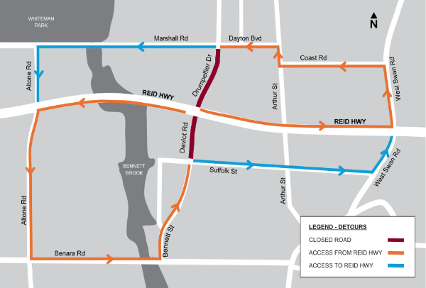 - Modifications to Reid Highway from Altone Road to Arthur Street to support the new interchanges.