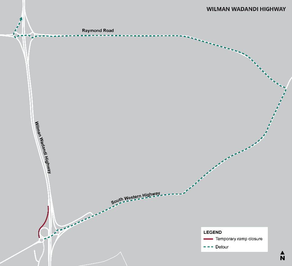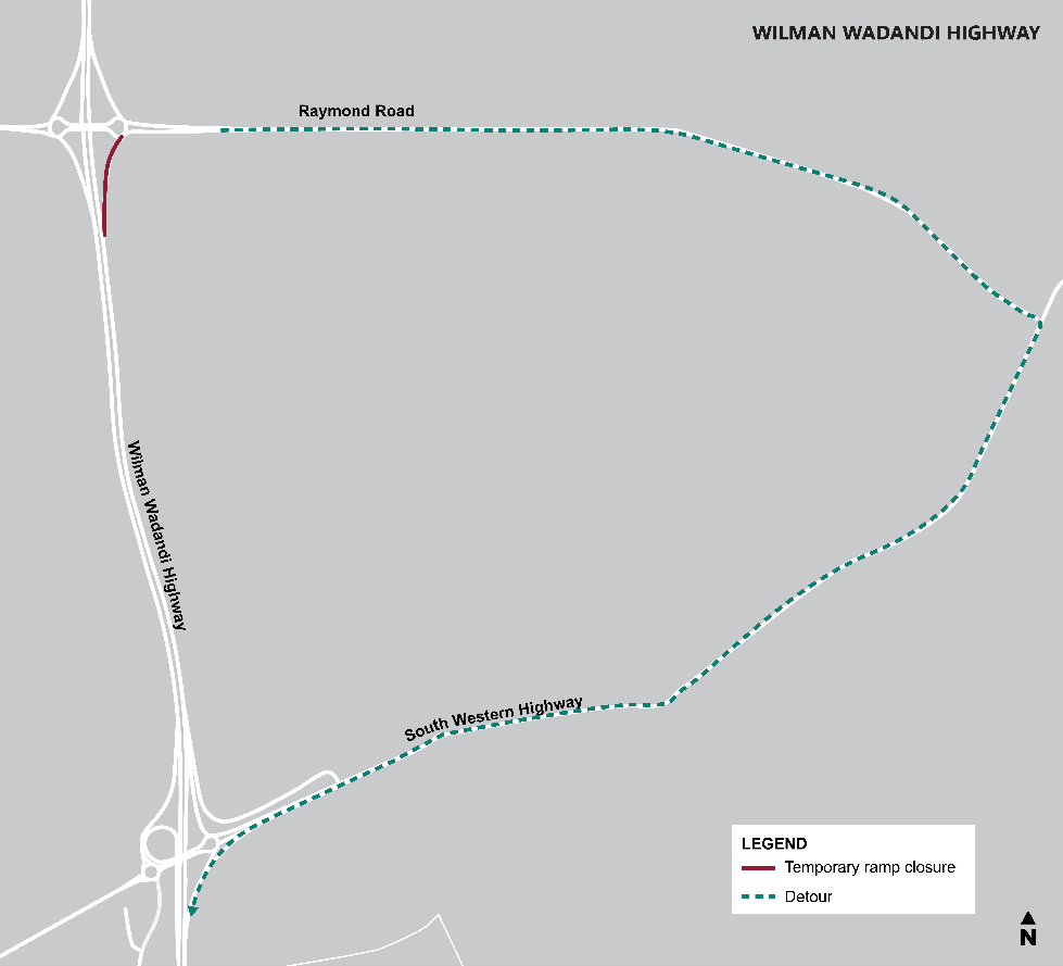 - Detour via South Western Highway (north) and Raymond Road