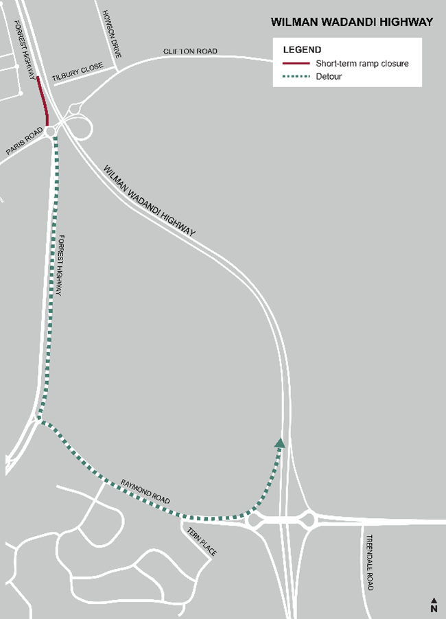 Wilman Wadandi Highway, northbound on-ramp at Paris Road