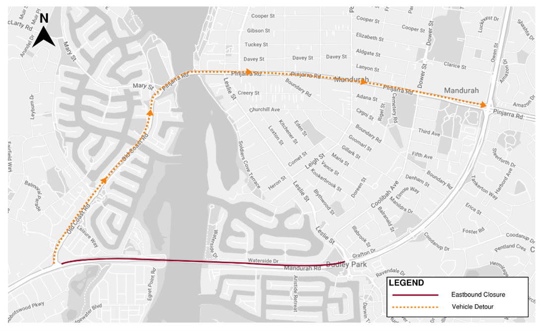 Once this traffic switch is completed, work will commence on re-asphalting the existing Mandurah Estuary Bridge. Eastbound traffic will continue as a single lane across the existing Mandurah Estuary Bridge. Motorists should expect lane switches on this bridge as the re-asphalting progresses.