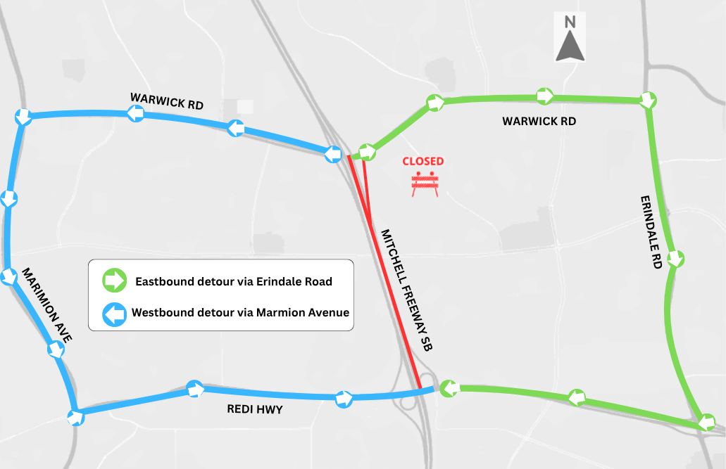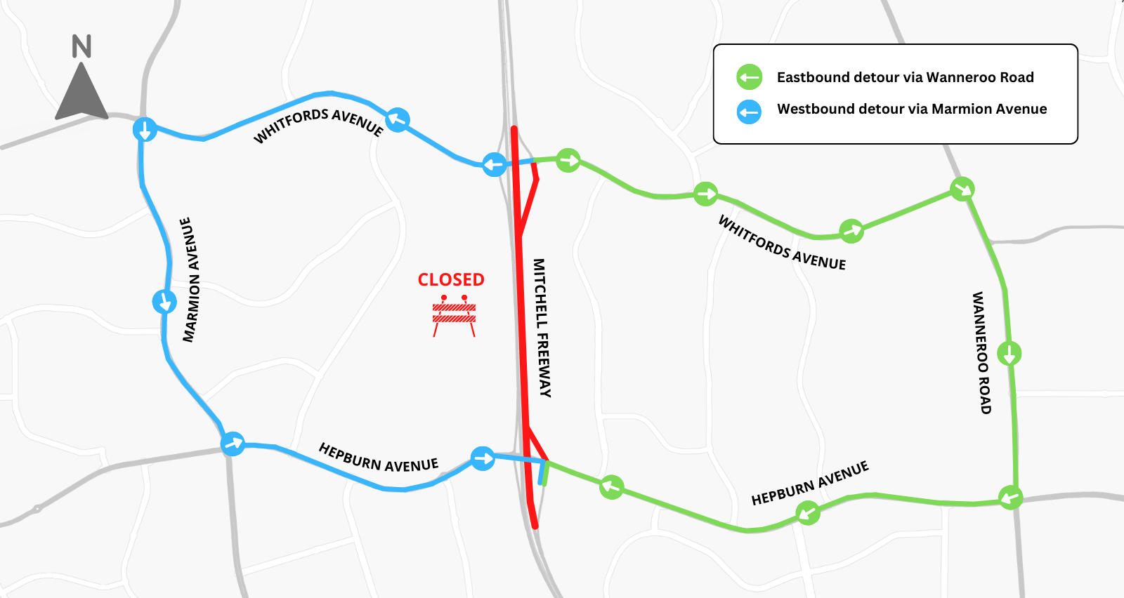 - Whitfords Avenue on-ramp and Hepburn Avenue off-ramp close from 8pm.