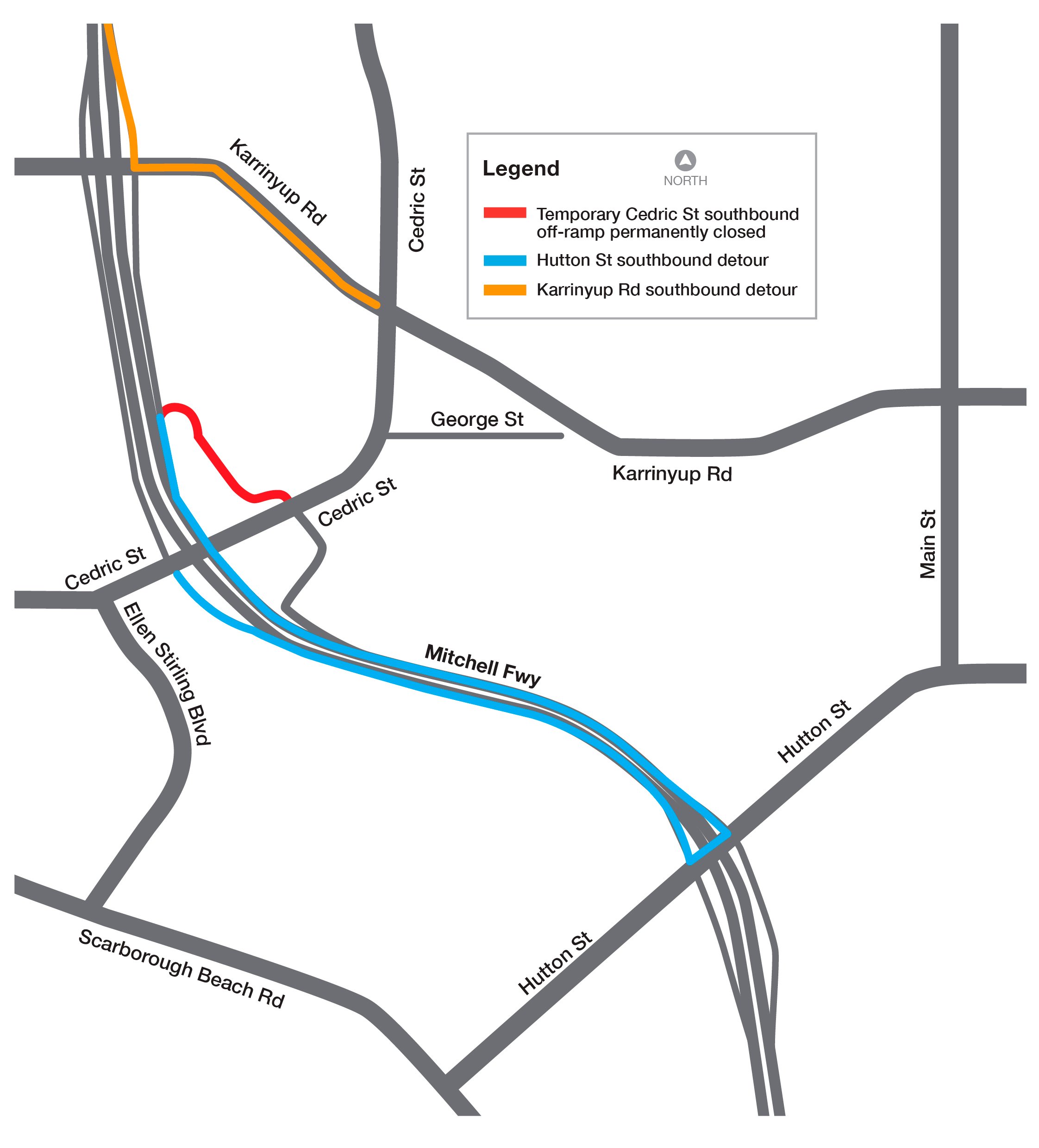 Once the Cedric Street southbound off-ramp is closed, we will be working 24/7 to minimise the timeframe the ramp is closed and therefore disruption to traffic.